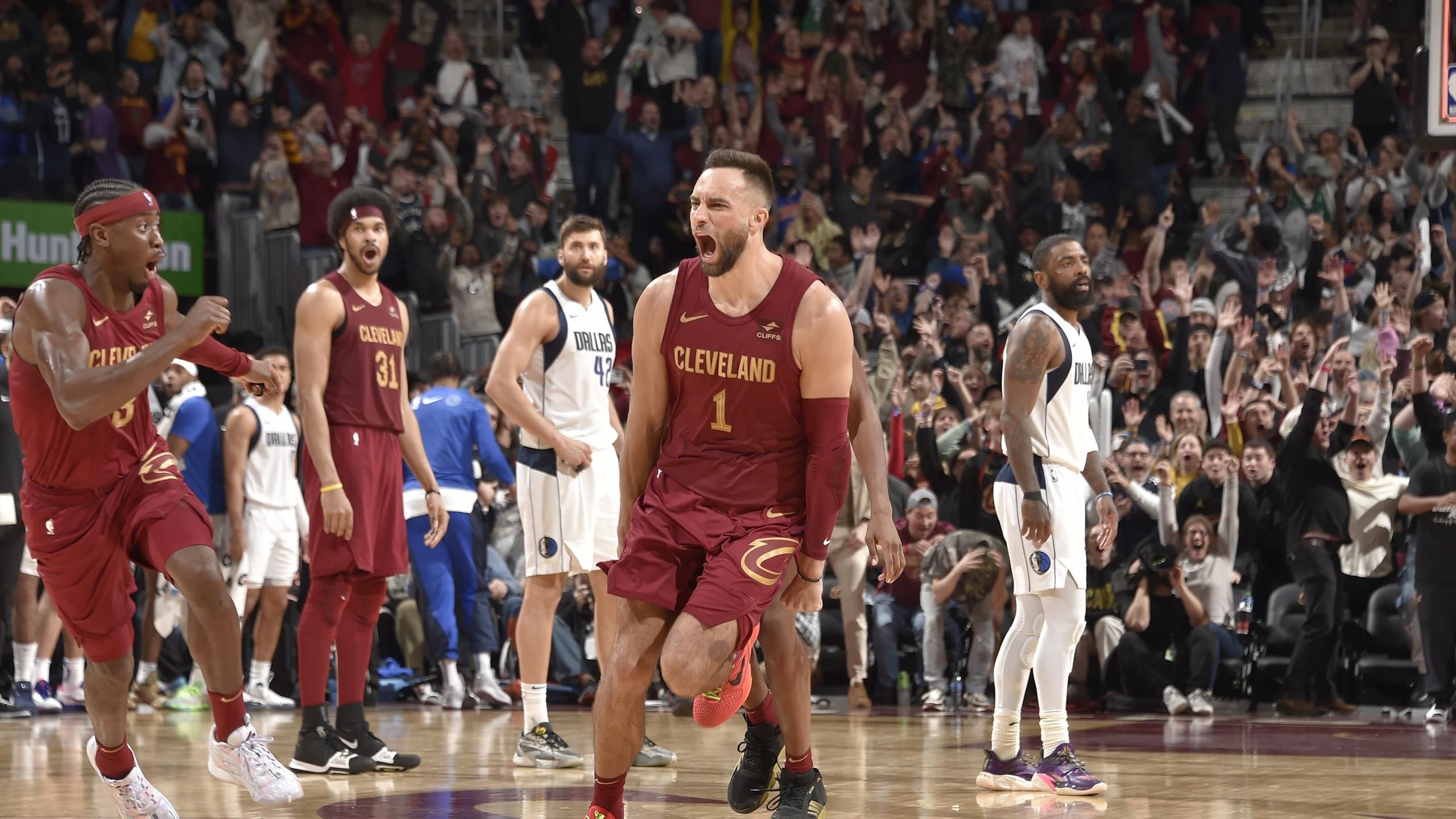 “سدد ماكس ستروس رمية ثلاثية من مسافة 59 قدمًا عند الجرس ليحقق كليفلاند كافالييرز فوزًا مفاجئًا على دالاس مافريكس بنتيجة 121-119 ليلة الثلاثاء. وتقدم مافريكس قبل 2.9 ثانية من نهاية المباراة وبدون أي وقت مستقطع. احتاج فريق كافالييرز إلى معجزة وقام ستروس بتسجيل ثلاثية بعيدة المدى ليحقق الفوز. وفي مكان آخر، فاز غولدن ستايت ووريورز وبوسطن سيلتيكس.