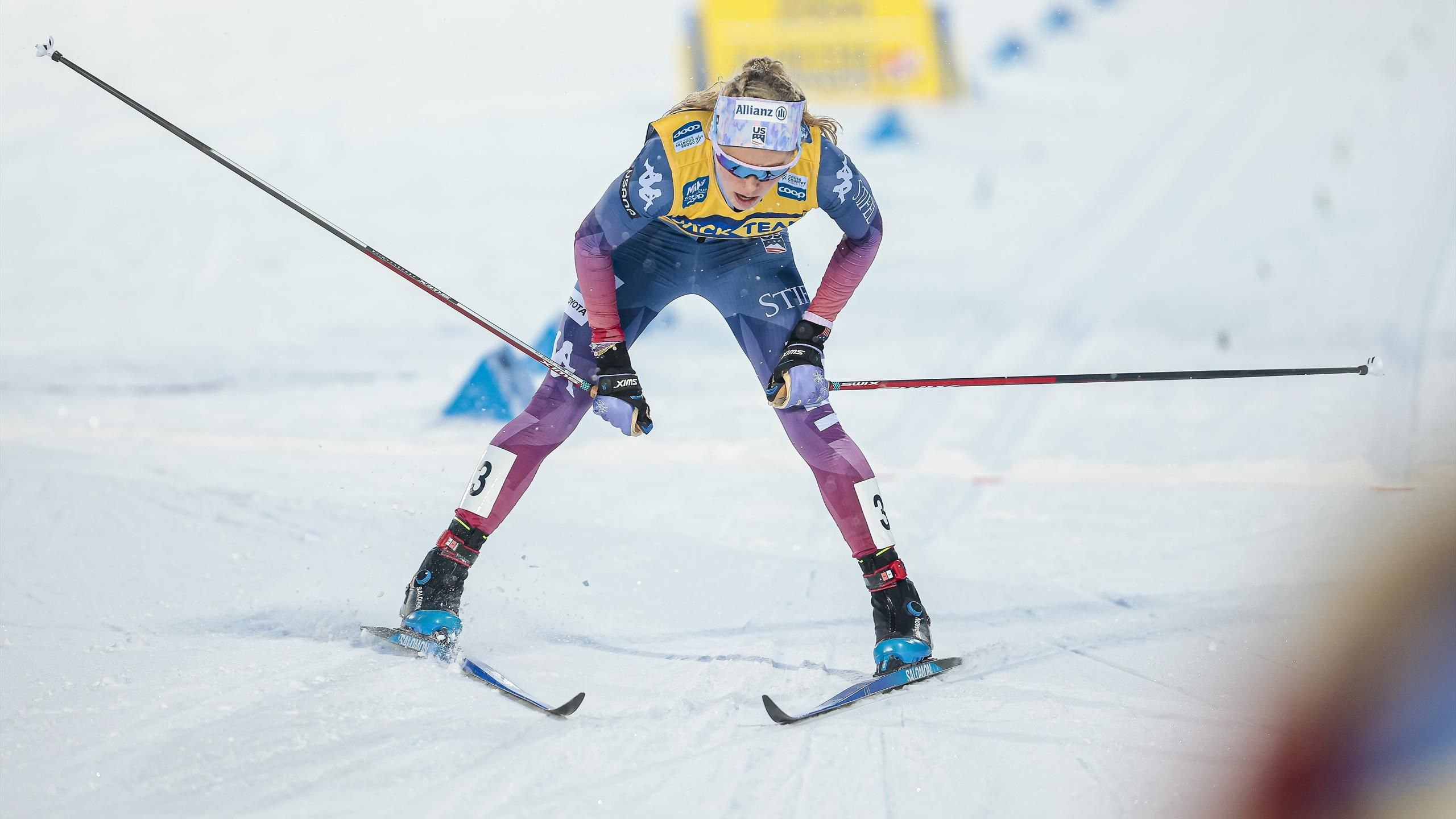 بعد أن قادت السباق لمسافة 9 كم و14.5 كم، شاهدت Diggins السويدية فريدا كارلسون وهي تقوم بخطوة كبيرة قبل 2 كم من النهاية.