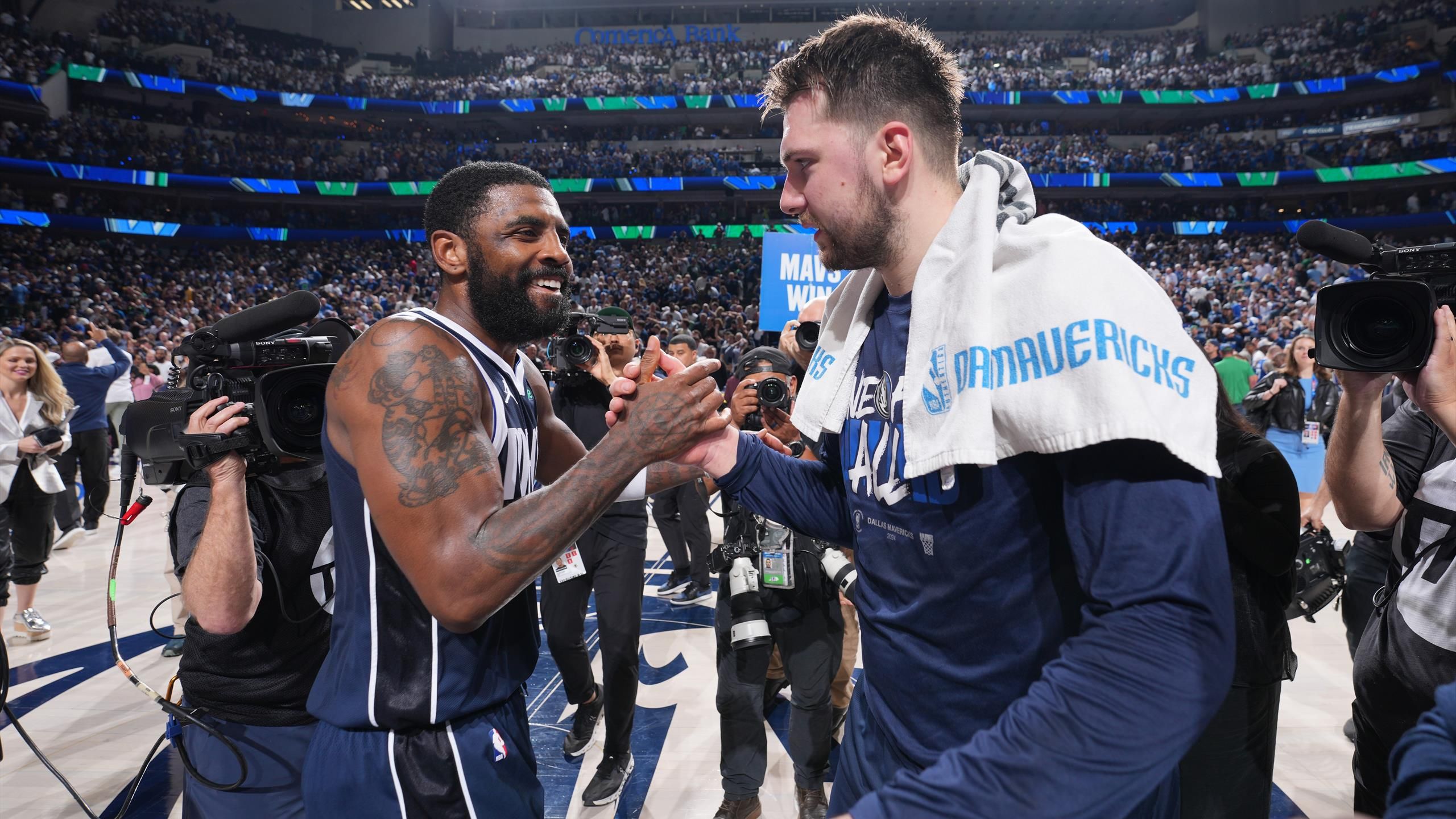 “قدم كل من لوكا دونسيتش وكايري إيرفينغ أداءً مميزًا مساء الأحد حيث عادا من الخسارة قبل خمس دقائق من نهاية المباراة، ليحققا فريق دالاس مافريكس فوزه الثالث على التوالي على مينيسوتا تمبروولفز في نهائيات المؤتمر الغربي. دفع اللاعبان الثمن تحية لبعضنا البعض في أعقاب الفوز.”