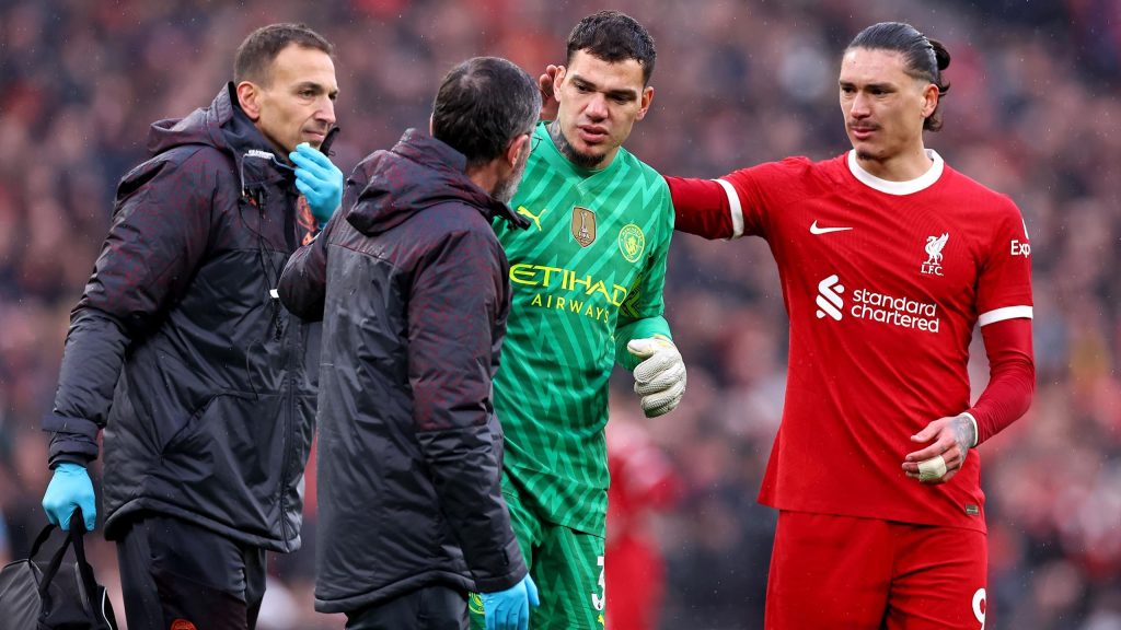 “يبدو أن حارس مرمى مانشستر سيتي إيدرسون سيغيب عن مواجهة فريقه على لقب الدوري الإنجليزي الممتاز مع أرسنال يوم 31 مارس في ملعب الاتحاد بعد استبعاده لمدة تصل إلى أربعة أسابيع بسبب إصابة عضلية. أصيب البرازيلي بنفسه عندما ارتكب خطأ ضد داروين نونيز أثناء المباراة.” تعادل السيتي 1-1 مع ليفربول على ملعب أنفيلد، حيث أهدر إيدرسون ركلة الجزاء التي سجلها أليكسيس ماك أليستر ليدرك التعادل لأصحاب الأرض.