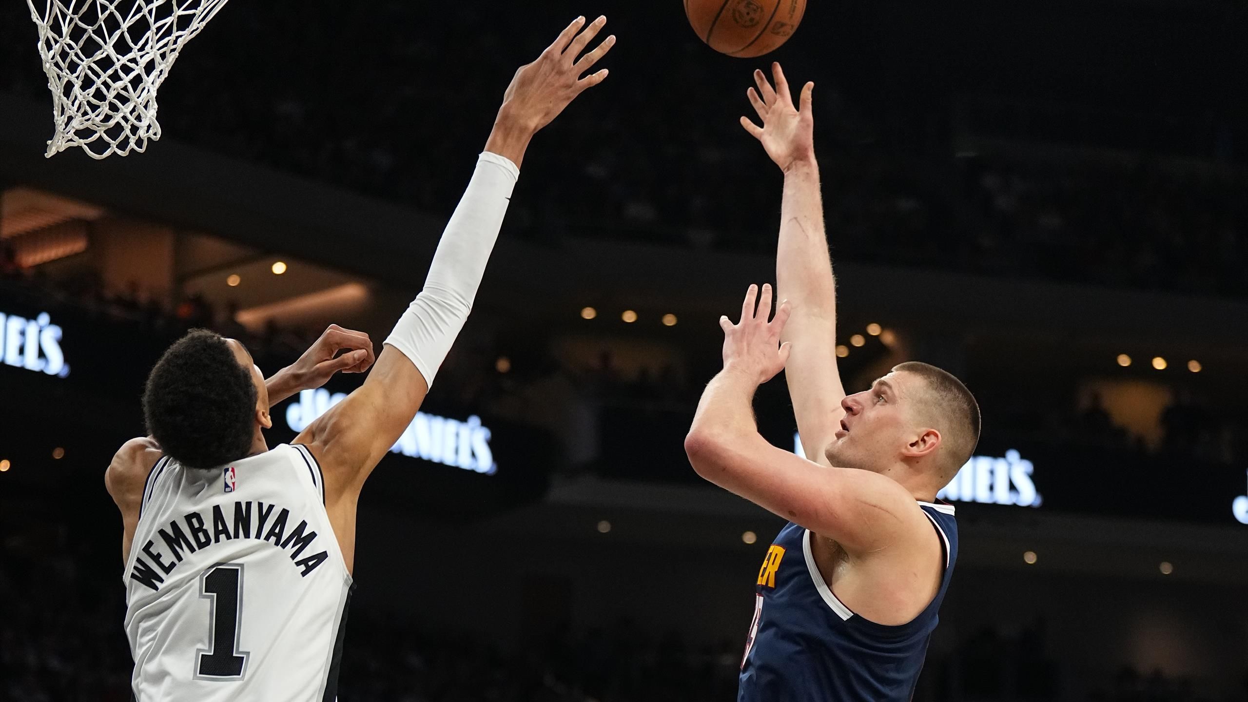 “تقدم دنفر ناغتس إلى صدارة ترتيب المنطقة الغربية بفوزه على سان أنطونيو سبيرز 117-106. فوز ناجتس، الذي يسعى للدفاع عن لقبه الأول في دوري كرة السلة الأمريكي للمحترفين، يعني الهزيمة الثالثة على التوالي لفيكتور ويمباانياما. توتنهام والخسارة الخامسة في ست مباريات، وفي مكان آخر سجل زيون ويليامسون 34 نقطة في فوز نيو أورليانز بيليكانز على لوس أنجلوس كليبرز.