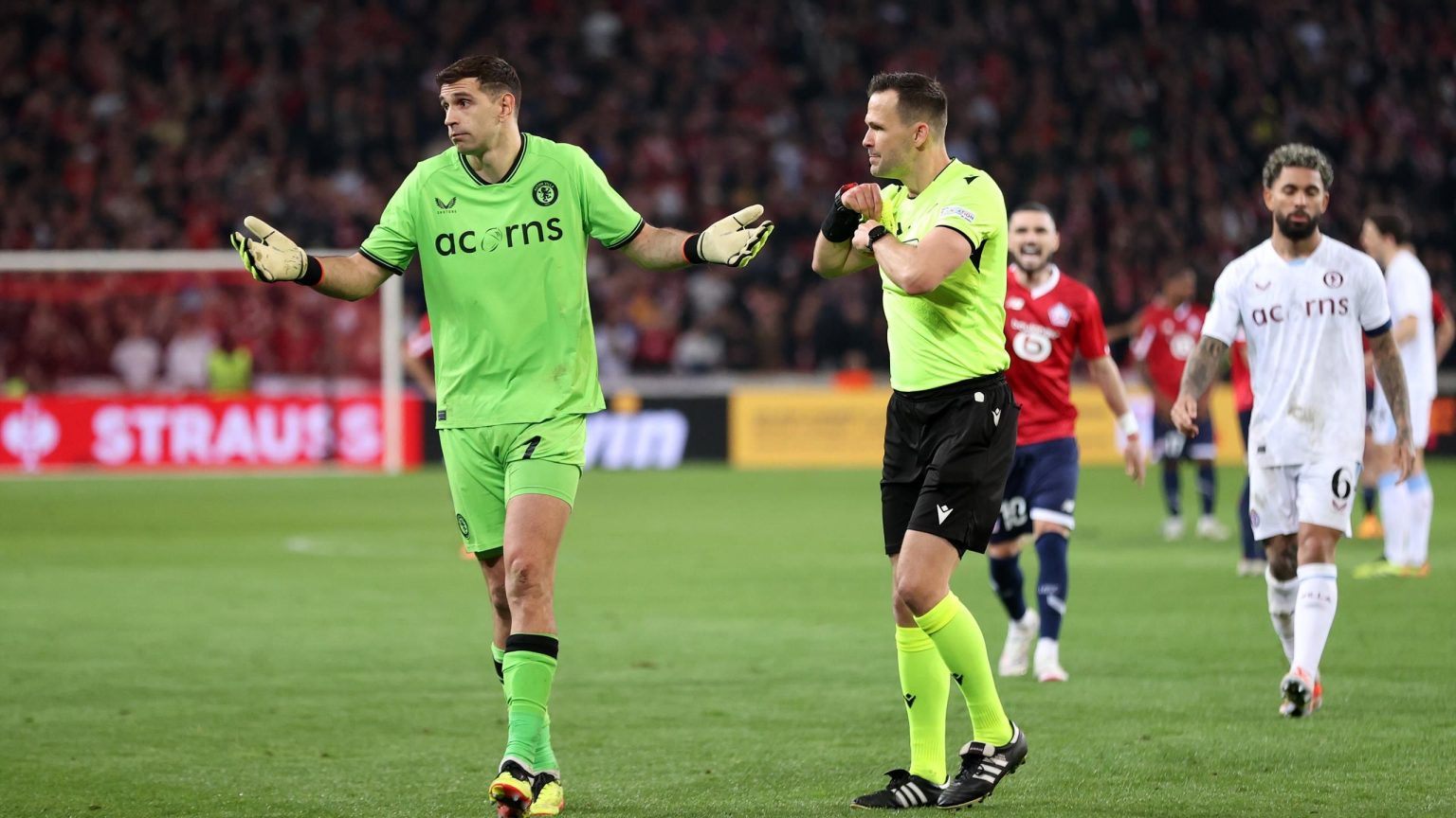 “كانت هناك نهاية غريبة لمباراة أستون فيلا في إياب ربع نهائي الدوري الأوروبي أمام ليل. يبدو أن إيمي مارتينيز قد حصل على البطاقة الصفراء الثانية لتحريضه الجماهير داخل ملعب بيير موروا، ولكن كما حدث تبين أن اللون الأصفر السابق لم يستمر في ركلات الترجيح، قال آلان هوتون عن تصرفات مارتينيز الغريبة: “هذا يعبث بعقلك”.