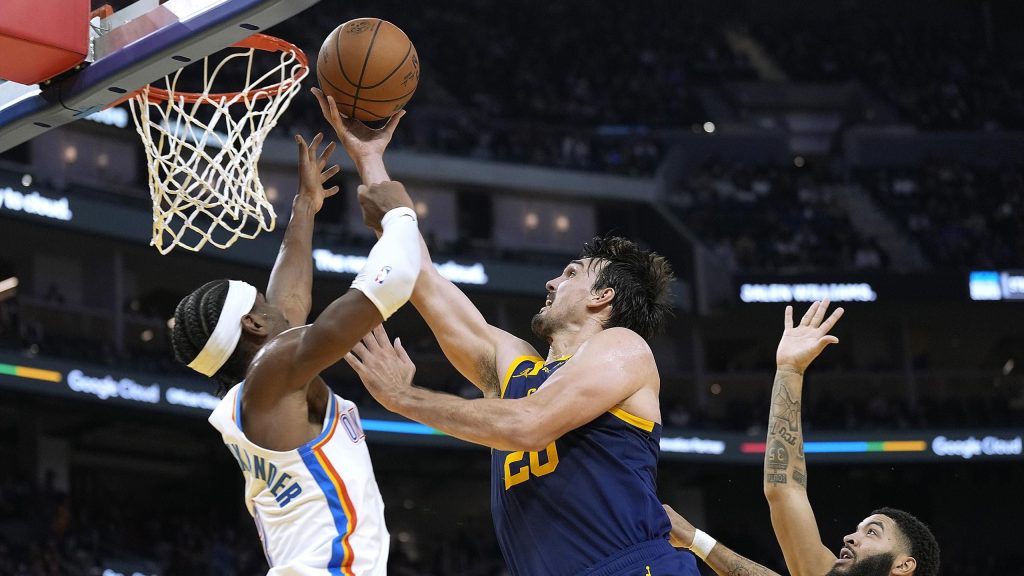 “لقد كانت ليلة محبطة لفريق غولدن ستايت واريورز، الذي خسر أمام أوكلاهوما سيتي ثاندر بدون ستيف كاري ودرايموند جرين. قدم جوناثان كومينجا أداء رائعا في غياب جرين بتسجيله 21 نقطة، لكن الرعد هو الذي حقق الفوز. وكان جوش جيدي من بين نجوم الفريق برصيد 19 نقطة، فيما تغلب ميامي هيت على بروكلين نتس 122-115.