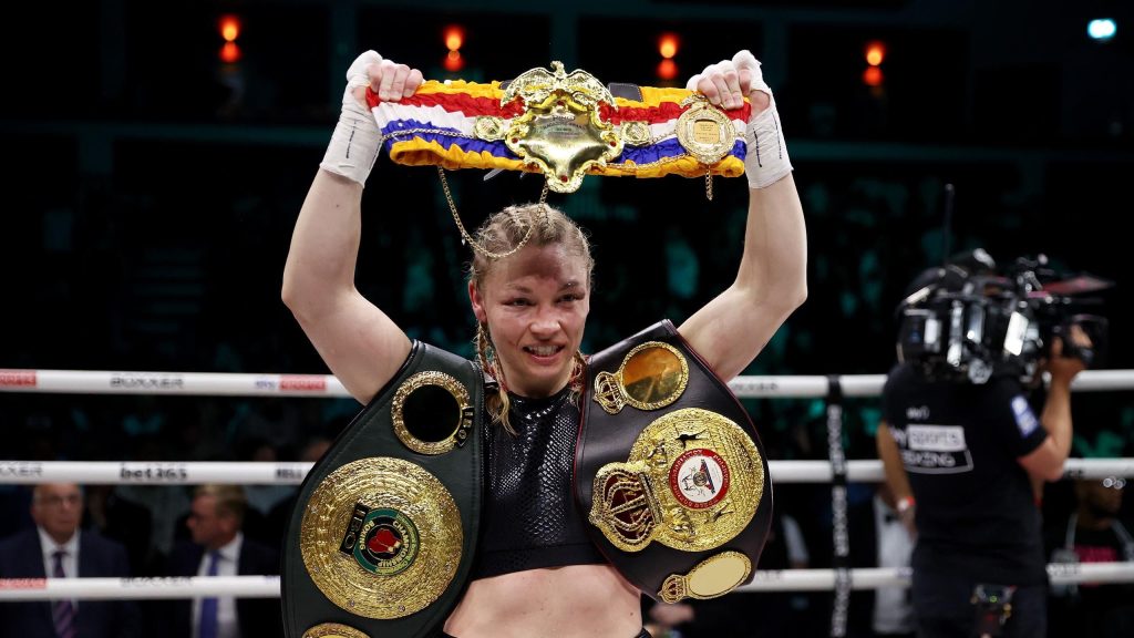 “حاولت جيسيكا مكاسكيل الاحتفاظ بحزام رابطة الملاكمة العالمية لوزن الوسط في ويلز ليلة السبت عندما واجهت لورين برايس المفضلة على أرضها. برايس هي بطلة الألعاب الأولمبية لعام 2020 وتمكنت من إيقاف مكاسكيل عندما ألغى المسعفون المواجهة بعد إصابة عين الأمريكية. من الممكن أن تكون معركة توحيد اللقب البريطانية بالكامل مع ناتاشا جوناس مطروحة الآن لبرايس في وقت لاحق من العام.”