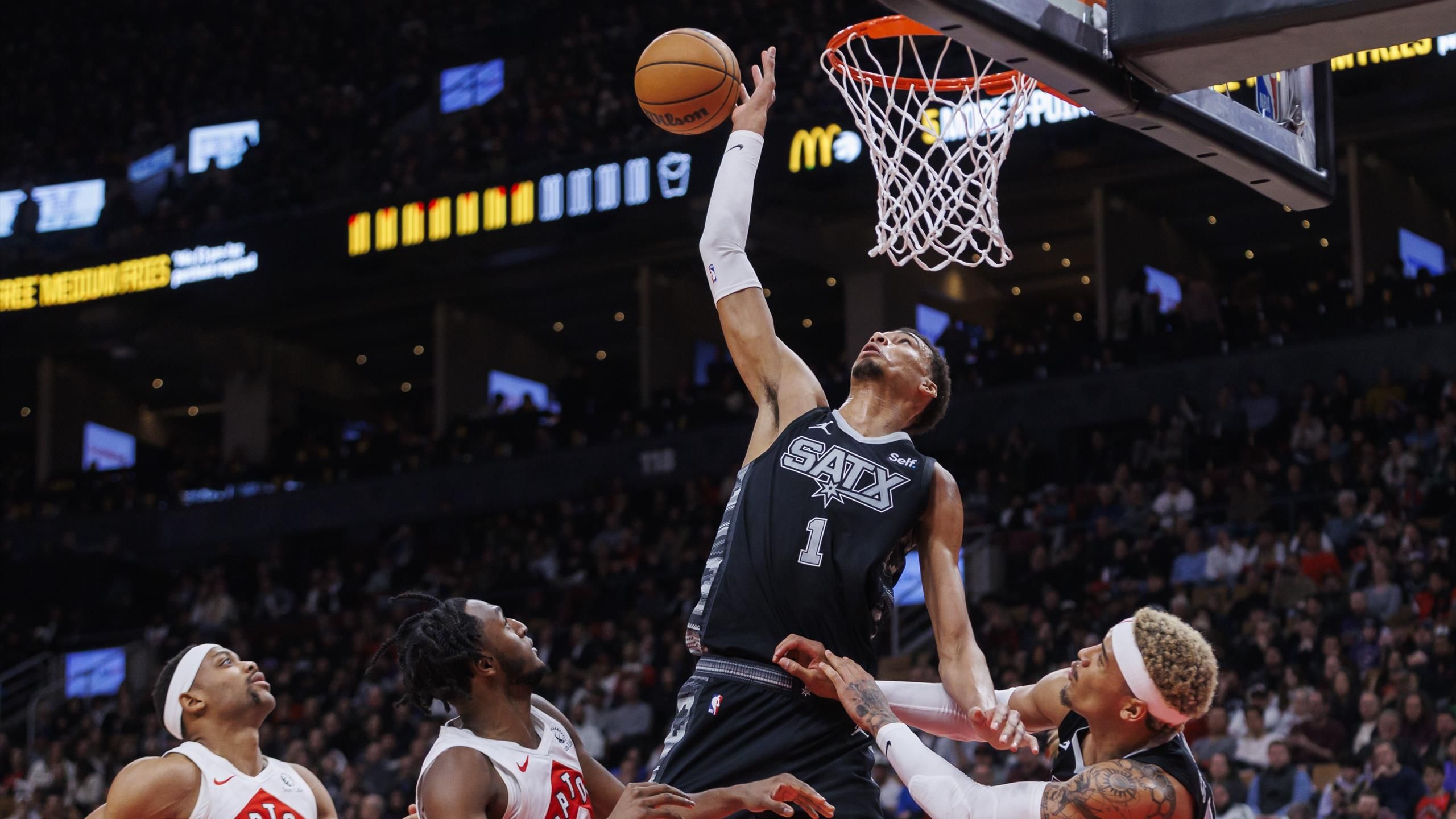 “تألق فيكتور ويمبانياما عندما فاز سان أنطونيو سبيرز على تورونتو رابتورز ليضع حداً لسبع هزائم متتالية. سجل الفرنسي ثلاثية مزدوجة نادرة بالكتل وأضاف اسمه إلى قائمة حصرية من الأساطير بأدائه. وفي مكان آخر، كان هناك فاز مينيسوتا تمبروولفز، وميلووكي باكس، وغولدن ستايت واريورز”.