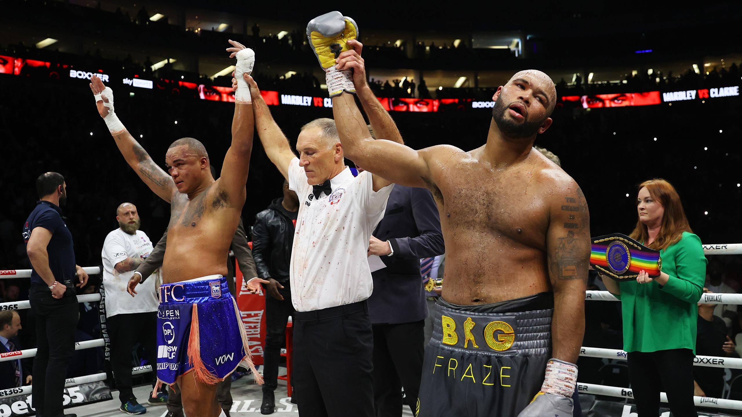 “تعادل فابيو واردلي وفريزر كلارك في معركة مثيرة على لقب الوزن الثقيل البريطاني في O2 Arena في لندن. وضع واردلي ألقابه البريطانية والكومنولث على المحك وسجل الضربة القاضية الوحيدة في المسابقة لكنه كان في موقف دفاعي لفترات طويلة واستمر في ذلك. أضرار جسيمة في وجهه. لم يُهزم كلا المقاتلين، ودعا كلارك إلى إعادة المباراة في أعقاب ذلك.