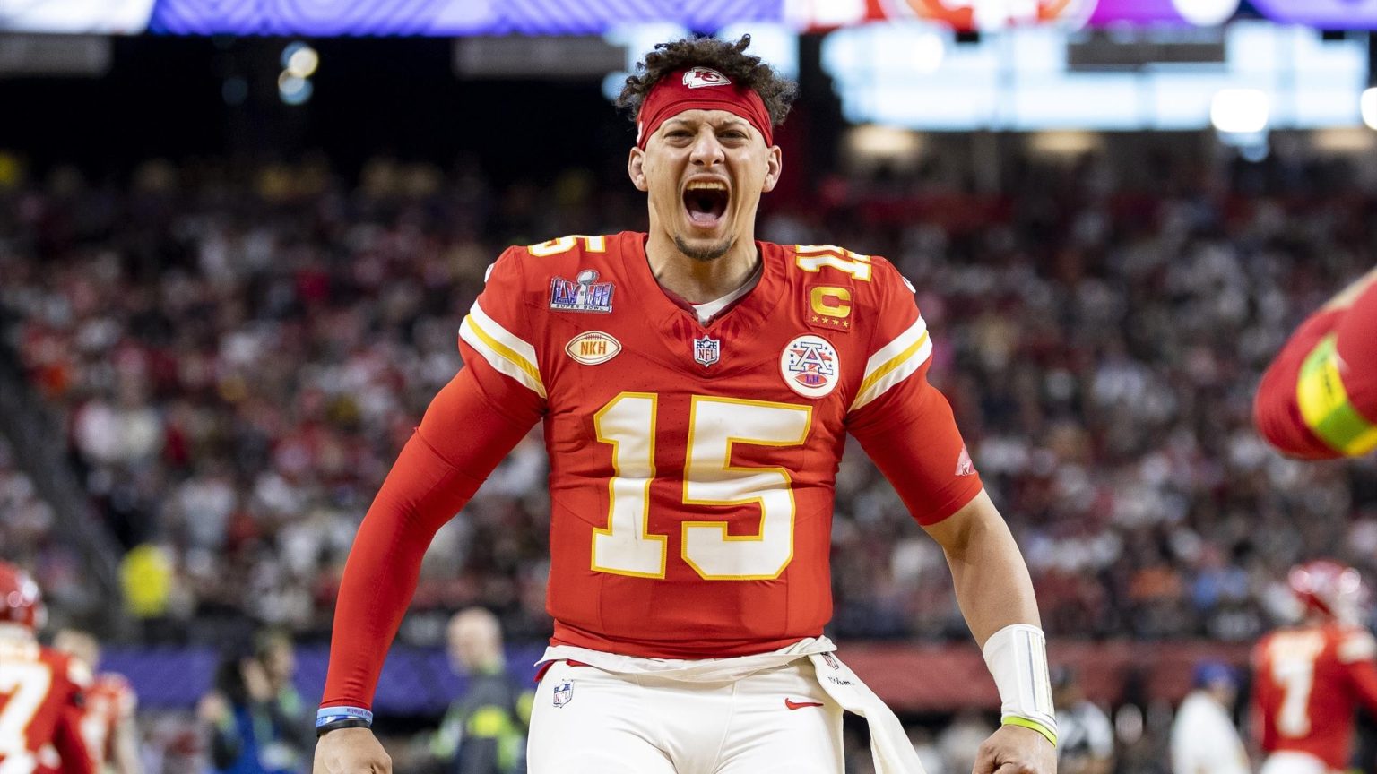“ألهم باتريك ماهومز فريق كانساس سيتي تشيفز لتحقيق فوز دراماتيكي في سوبر بول على سان فرانسيسكو 49ers في لاس فيجاس. ساعدت بطولات لاعب الوسط المتأخرة فريقه على الصعود إلى الملعب للمطالبة بهدف ميداني لإرسال المباراة إلى الوقت الإضافي. ماهومز ثم نفذ محرك القابض في الوقت الإضافي وأعطى تمريرة الهبوط لميكول هاردمان والتي ختمت الألقاب المتتالية للزعماء.”