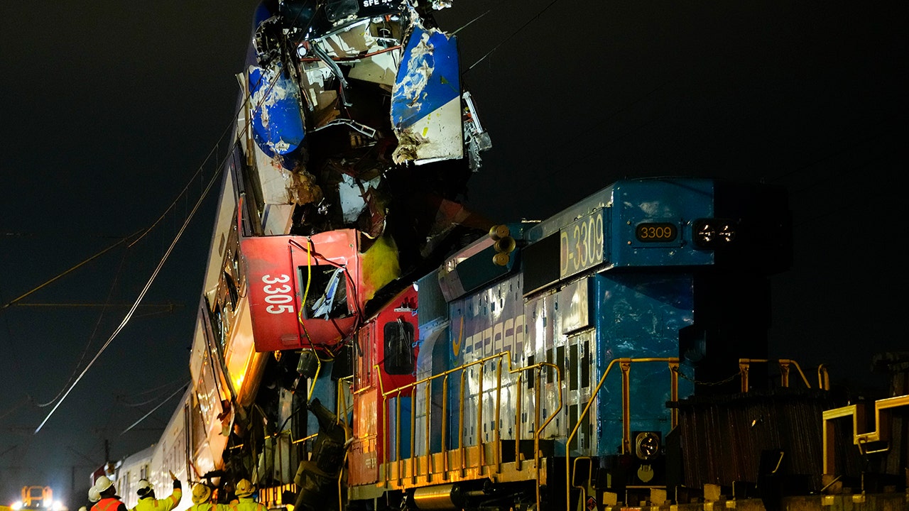 وأظهرت لقطات كاميرا الأمن القطارين يسيران بسرعة عالية عندما اصطدما ببعضهما البعض. ولم يتضح على الفور سبب عدم تنبيه القطار التجريبي لاقتراب قطار الشحن.