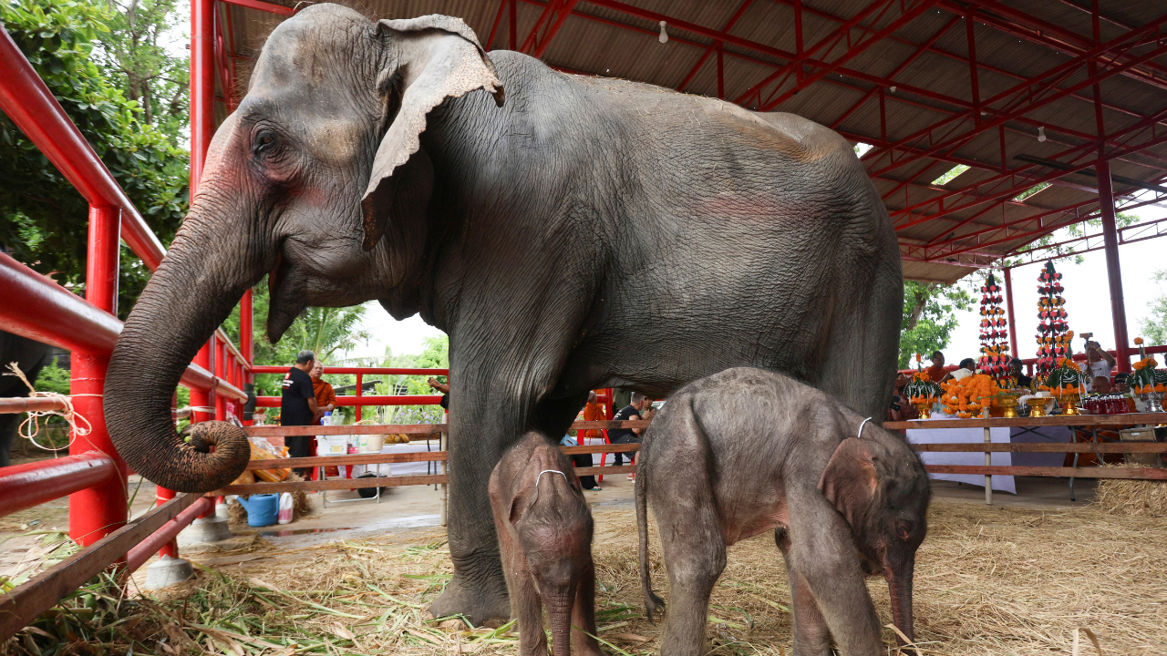القائمون على رعاية الحيوانات في تايلاند “مصدومون” بعد ولادة مفاجئة لتوأم نادر من الفيلة