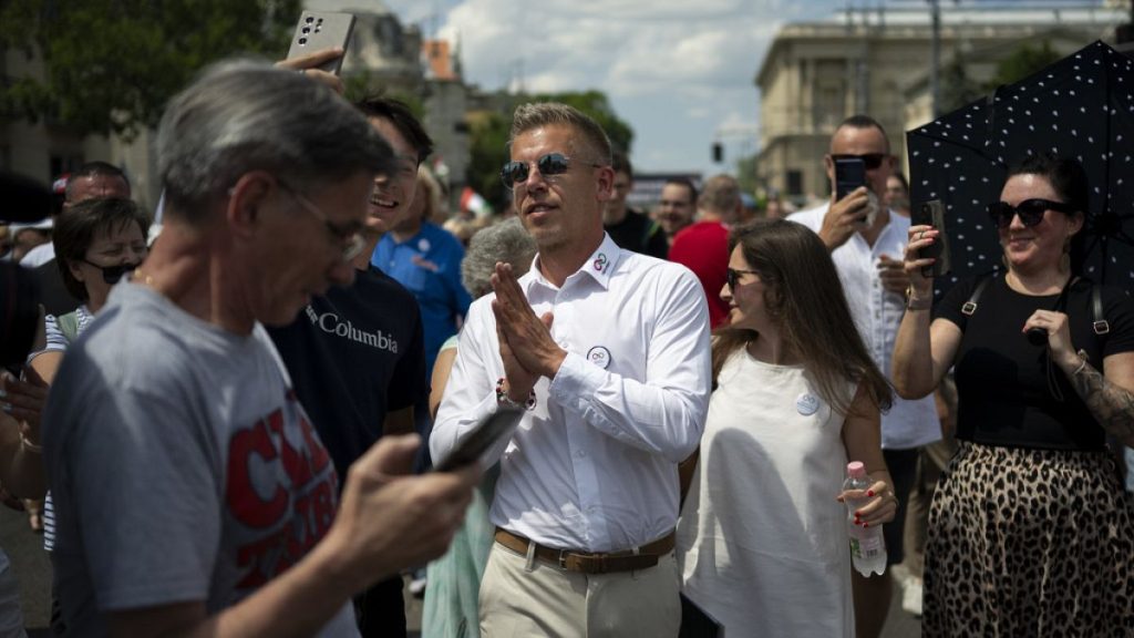 حشد الوافد السياسي الجديد الذي يأمل في توجيه ضربة لرئيس الوزراء المجري فيكتور أوربان عشرات الآلاف من المؤيدين في بودابست يوم السبت.
